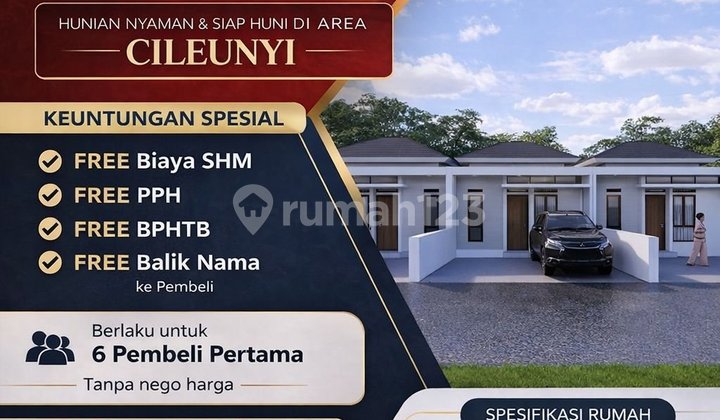 PROMO TERBATAS ! HANYA UNTUK 6 PEMBELI PERTAMA! FREE BIAYA SHM + PAJAK + BPHTB + BALIK NAMA! Anda hanya fokus ke aset BUKAN ke biaya "tambahan" yang tidak terlihat! Promo terbatas hanya mulai 1 April 2026 s/d 31 Mei 2026. Miliki rumah desain modern kekinian, akses mudah ke Cibiru, Cileunyi dan pusat kota Bandung. - Terletak di kawasan padat penduduk dan berkembang - Dekat dengan perumahan Grand Cinunuk - Jalan lebar di cor, jalan muat 2 mobil - Sumber air melimpah - Tersedia kirmir dan selokan - Investasi yang menguntungkan - Hanya 3 menit ke SDN Cintagelar 4 dan masjid - Hanya 5 menit ke SMPN 3 Cileunyi dan Full Day School Al-Azhar Cairo - Hanya 7 menit ke jalan raya Cinunuk, Griya Cinunuk dan Borma Cinunuk - Hanya 7 menit ke SDN, Puskesmas Cinunuk dan kantor desa Cinunuk - Hanya 7 menit ke gerbang tol Cileunyi - Hanya 10 menit ke RS AMC - Hanya 12 menit ke Cibiru/UIN Sunan Gunung Jati - Hanya 15 menit ke pusat pendidikan Jatinangor (UNPAD, ITB, STPDN) - Legalitas Sertifikat Hak Milik (SHM) Pembayaran flexibel, bisa KPR ke Bank dengan DP minim, atau cicil langsung ke developer, tanpa BI checking. Proses cepat, anti ribet. Cicilan flat sampai lunas. Tunggu apa lagi, segera survei dan booking unitnya sekarang sebelum keduluan yang lain.