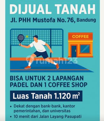 Dijual tanah di main road sayap dago Bisa untuk 2 lapanagan padel & 1 coffee shop Lt 1.120m Lb 250m SHM Hadap utara Harga 21M Dekat kantor dan bank, 10 menit dari jln layang Pasupati Natalia max v pro ********