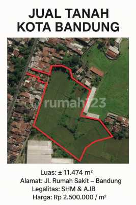 Dijual Tanah di Jalan Rumah Sakit - Gede Bage Kota Bandung - SHM & AJB - Luas Tanah ± 11.474 m² - Lokasi strategis Harga: Rp 2,5 Juta/m² NOY / HAR