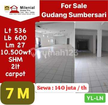 Sale Gudang sumber sari Lt 536 Lb 600 Lm 27 2 lt 10.500 w Carport 6 akses mobil fuso 7 m Nego sampai jadi YL/ LN