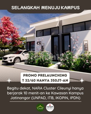 Nara Cluster Cileunyi Bandung Timur Bingung cari rumah Idaman dengan harga terjangkau? Promo Pre-Launching: Rumah tipe 32/60, dari 380 Juta jadi 350 Juta aja! Rumah 2 lantai tipe 50/60, dari 519 Juta jadi 485 Juta aja! Mengapa Harus Nara Cluster? Desain rumah bergaya Jepang minimalis Dekat akses tol & jalan utama provinsi Lingkungan sudah terbentuk & dekat kawasan kampus Jatinangor One gate system & row jalan 5 meter Skema pembayaran fleksibel Unit Terbatas!* Sudah 3 Unit TerBooked. Jangan sampe kehabisan! Booking Fee Hanya 3 juta Rupiah! Hubungi: 0815xxxxxxxx Lokasi: Jl. H Holili, Galumpit. Cileunyi, Bandung Timur Aksesibilitas Strategis - 5 Menitan ke Gerbang Tol Cileunyi - 10 Menitan ke UNPAD/ITB Jatinangor - 9 Menitan ke RS AMC Cileunyi - 10 Menitan ke Griya Grand Cinunuk - 10 Menitan ke Pasar Tradisional Cileunyi - 12 Menitan ke Borma Cinunuk - 15 Menitan ke Jatos Jatinangor - 14 Menitan ke Stasiun Rancaekek - 25 Menitan ke Stasiun Woosh Tegal luar - 6 Menitan ke SDN 1 Cileunyi - 10 Menitan ke SMPN 1 Cileunyi - 16 Menitan ke SMAN 1 Cileunyi Unit Terbatas! Sudah 3 Unit TerBooked. Jangan sampe kehabisan! Hubungi: 0815xxxxxxxx Jual Rumah di Jatinangor Cileunyi Bandung Timur UNPAD/ITB Jatinangor