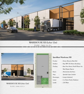 *GUDANG BEST* *( Bandung Industrial Estate )* - Developer PT. Agung Prakarsa Propertindo - Luas keseluruhan 17 ha. Tahap pertama dipasarkan 1 ha (300 unit ) terdiri dari gudang lebar 8 dan 12 m serta Ruko - Kawasan industri zona abu - Dkt ke Tol Soreang dan Tol Kopo - Rencana akan ada akses Tol Margaasih dan Tol.Kutawaringin Timur ( Jalak Harupat ) - Area pengembangan tahap pertama 20 unit Deskripsi Bangunan : - Ls tanah 268 - 277 m ( lebar 8 ), Bangunan 96 m - Ls tanah 474 - 604 m ( lebar 12 m ), Bangunan 288 m - Bangunan 1 lantai - Tinggi pintu gudang 4.5 m - Tinggi tengah plafon 9 m - Bentuk atap segitiga - Listrik 2200 w - Air submersible ± 30 m - Struktur bangunan hanya utk 1 lantai - Lantai cor beton hardener - Pengembangan bs dibantu o/kontraktor dev - Pembangunan ± 7 bln - Sertifikat HGB Murni - IPL ± 2500/m x ls tanah - Akses kontainer 20 ft Pembayaran : - Cash keras disc 3% ( 14 hari ) - Cash bertahap 12 bln bunga 0% ( No disc ) setelah Pembayaran DP 20 %, sisa pelunasan dibyr bertahap selama 12 bln - KPG ( kredit Pemilikan gudang ) - Rekanan Bank : BCA, OCBC NISP, BPR Daya Lumbung Asia *Fasilitas :* - Lokasi strategis - Bebas banjir - One gate system - Ruang terbuka hijau - Bebas kuli bongkar - Row jalan cor beton ( 10-14 m) More info : VERA PRO ~ 08221502xxxx