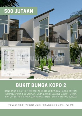 BUKIT BUNGA KOPO 2 Berlokasi di Bandung Selatan, Katapang - Soreang Hanya sekitar 7-10 menit dari exit Tol Soreang *Hanya 19 Unit* TERBATAS !! 2 Lantai Type Bangunan 50 dan 60 Harga Mulai 500 jutaan Bisa DP 10 jutaan all in Secara Geografis sangat dekat ke Soreang Secara Administratif masuk kecamatan Katapang Rumah Sakit Terdekat: RS Umum Daerah Soreang RS SANTOSA KOPO Sekolah Terdekat: SMA 1 Dayeuh Kolot SMA 1 KATAPANG SMP IT AL IBDA SMP AT TAQWIM Kampus Terdekat: UNIVERSITAS NURTANIO UNIVERSITAS TELKOM Mall Terdekat: Festival Citylink Miko Mall Centra Sepatu Cibaduyut Wisata Terdekat: Kawah Putih Bumi Perkemahan Ranca Upas Kolam Air Panas Ciwalini Kebon Tehh Rancabali Situ Cilenca Situ Patenggang Jalan Tol terdekat: Tol Seroja Tol Kutawaringin Tol Kopo Toserba terdekat: BORMA KATAPANG Survey segera lokasi kami Hub : CHANDRA PROPERTY 0878xxxxxxxx WA SALAM SEHAT BAHAGIA