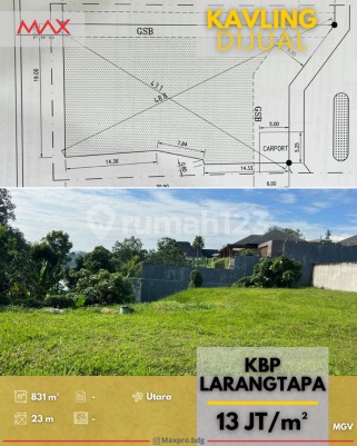 *DIJUAL* *Kavling KBP* *Larangtapa* LT 831 Lebar muka 23 Hadap Utara *JUAL : 13jt/m2* MGV