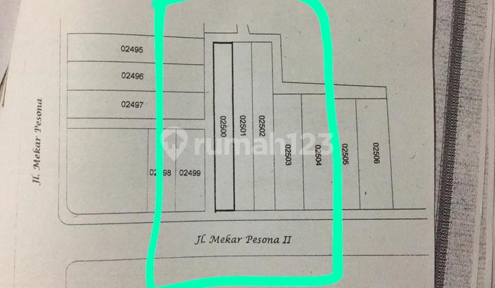 Jual Tanah Kavling Kompleks Mekar Wangi. Cluster Mekar Pesona LT 488 Lebar Muka 13 meter. KOTAK SEMPURNA Ada Kelebihan Tanah 100 meters. Hadap selatan Rp 13 juta /m Yolanda