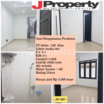 SINGGASANA PRADANA RUMAH MINIMALIS SIAP HUNI LT 102 M² LB 82 M² Lebar Muka 6 Meter KT 3+1 KM 2+1 Listrik 2200 Watt Token Air Artesis Komplek Hadap Utara Carport 1 mobil Harga 2.5M -> 2.35M nett info : Judith JProperty 0813xxxxxxxx