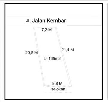Dijual Tanah Kavling Jl. Kembar Luas SHM : 161 m Luas ukur Tanah : 171 m Lebar Muka : 7,2 m Lebar belakang : 8,8 m Hadap : Utara Legalitas : SHM Lokasi dalam komplek Akses jalan lebar Harga : 2 M Hen
