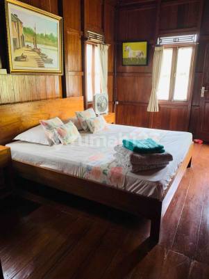 DIJUAL Rumah/Villa dengan konsep bangunan kayu sangat cocok untuk usaha atau tinggal halaman belakang bisa untuk hidroponik Ada Kolam ikan Luas tanah 308m2 Luas bangunan 200m2 Kamar tidur 4+1 kamar mandi 2+1 Carpot 2 mobil Harga jual 3,25 Milyar nego