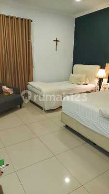 Dijual rumah Kembar barat Semi furnished Lt 135 Lb 100 Kt 2 Km 2 Listrik 2200 Air pam Shm Hadap barat Carport 1 AC 1 Harga 1,6 byd