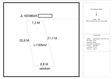 DIJUAL TANAH DI JALAN KEMBAR SHM Luas tanah: 171 m2 Lebar 7,2 m Hadap utara bentuk tanah tidak kotak ya (lihat pada gs) Harga 1,999M HEL