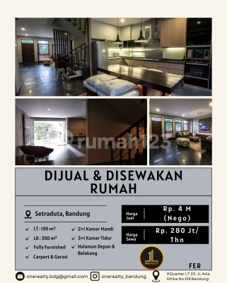 *TURUN HARGAAAA* _khusus bulan ini !!!_ For Sale/ For Rent @ Setraduta Land 195 m2 Bangunan 350 m2 3+1 bedrooms 2+1 bathrooms Brand new fully Furnish Suitable for expats 2 kitchen , terrace living room, Dinning room, family room, Front + Backyard Garage 1 unit, carport 1 unit Ac 3 units Harga 4 Milyar nego Harga sewa 280 jt per th Deposit 25 jt _grab it fast_