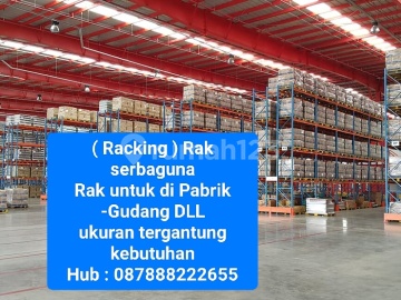 Di Jual tanah + rumah Pabrik / Gudang + rumah tinggal Soekarno Hatta Mainroad Luas tanah : 1700 m2 Luas bangunan : 1300 m2 Rumah tinggal Kantor Akses container 40 feet Exit terdekat : tol moch toha & tol pasir koja & tol kopo Harga : 23 M nego Hub Ronny : 087 888 xxx 655 ~~~~~~~~~~~~~~~~~~~~~~~~~~~~~~ [ Racking] Rak serbaguna Rak barang macam2 Rak penyipannan barang di Pabrik & Gudang. Ukuran variasi tergantung kebutuhan permintaan . Tinggi Rak bisa sampai pelafon . Harga : 600.000 per pallet posisi Hub : 087 888 xxx 655 ~~~~~~~~~~~~~~~~~~~~~~~~~~~~~~