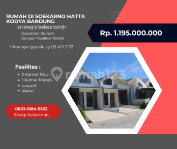 Rumah ready di soekarno hatta kodya bandung strategis bebas banjir CLUSTER HIMALAYA TYPE CASSIA 72- 72 Rp 12935000xxxxharga awal Rp 14375000xxxx Cluster Himalaya type 72 2 lantai Luas tanah 72m2 Luas Bangunan 72m2 Tersedia unit ready 2 Kamar tidur 2 Kamar mandi 1 Carport Himalaya type daisy LB 45 LT 90 ( 1 Lantai) 1. Carport 1 2. Kamar tidur 2 3. Kamar mandi 1 Kenapa harus segera booking? -DP 0% -Proses KPR dibantu -Fasilitas lengkap -Lokasi strategis Spesifikasi - Pondasi Foot Plat & Batu Kali - Struktur Beton Bertulang - Dinding Bata Merah + Plester Acian - Rangka Atap Baja Ringan - Kusen Alumunium - Atap Onduvilla - Plafond Gypsum - Lantai Granit Tile 60×60 - Kloset Duduk TOTO - Listrik 2200 Watt - Air Bersih Pompa Submersible - Cat Exterior & Interior Propan Fasilitas : - Sarana Ibadah - Lapangan tennis, Mini Soccer, Jogging Track, Mini Pool, Taman Hijau Dll. - Sekolah SD & TK islam - Kemanan dekat dengan Polsek Cinambo, Scurity 24 jam, One gate System. akses : - Dekat dengan Mall Summarecon - Dekat dengan Mesjid al jabar - Dekat dengan rumah sakit Muhammadiyah, Edelweiss dll - Dekat dengan Pintu tol Gedebage - Dekat dengan Stasiun Kereta Cepat ( KCiC) Cassia:1.437.500.xxx type 72/72 Daisy:1.465.000.xxx type 45/90 Daisy: 1.195.000.xxx type 42/72 Segera jadwalkan survey! Paminat serius hubungi: S. Asep Suherman Tlp/WA : 08531684xxxx
