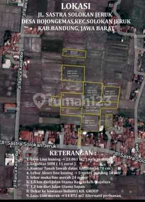Luas Tanah : 3,5 Hektar SHM 800 m ke mainroad Sapan-Gedebage 1,5 km ke mainroad Rancaekek-Majalaya Jalan 2 mobil Dekat kawasan industri Harga : 450.000/m2 YVO