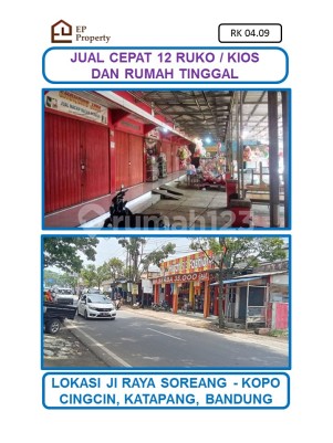 Dijual Cepat Turun Harga. 12 Ruko/Kios dan Rumah Tinggal. Bangunan Ruko sedang disewakan. LT/LB : 700/550 m2. Legalitas surat SHM. Lokasi : Jl. Soreang - Kopo, Cingcin, Katapang, Kabupaten Bandung, Jawa Barat. Bangunan Ruko & Rumah Hadap Selatan. Atap sudah cor/dak. Dibangun tahun 2013. 8 Ruko/Toko (4 X 16 m2) dan 4 Kios (2 X 3 m2). Lebar muka : 28 m & Panjang : 25 m. Listrik Toko @2200 watt. Air Toko : PAM. Tempat Parkir Luas (100 motor & 10 mobil) Lahan Parkir sampai jalan raya 9 meter. Rumah Tinggal : - 2 Kamar Tidur dan 1 Kamar Mandi. - Ruang Tamu, Ruang Keluarga & Dapur. - Listrik : 2200 Watt. - Air : PAM. Lokasi Strategis. - Pinggir Jalan Raya Soreang - Kopo, Bandung. - Dekat Pertigaan Patung Stawberry Soreang. - Dekat Pintu Tol Seroja. - Dekat Kantor Pemda, Pengadilan Agama, Polsek, Polres, Samsat & Pasar Soreang. - Dekat RS Hermina, RS Otista & Pemadam Kebakaran. - Dekat Stadion Jalak Harupat. - Dekat Bank BJB, BCA, BNI, Mandiri, BRI & BPN Syariah. Harga Rp 10,5 Milyar nego. Peminat serius langsung buat jadwal utk survey lokasi. Fast respond via chat WA 08821184xxxx.