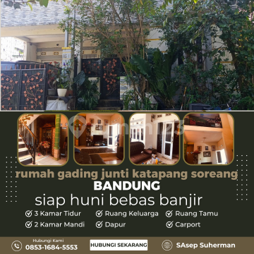 rumah di gading junti katapang soreang bandung siap huni bebas banjir spesifikasi: Luas tanah:81m luas bangunan:142m Kmar tidur 3 Kamar mandi 2 Mushola 1 Ruang tamu 1 Ruang keluarga 1 Carport 1 mobil 2 motor Kamar utama ukuran 7x3 Ukuran kamar lainnya 2,5 x 3,5 Dapur ukuran 6 x 3 Jumlah lantai 2 Sertifikat on hand + IMB selling point: dekat tempat ibadah ada lapang badminton 1 menit (50mtr) ke sekolah tk 2 menit ke sekolah SDN 2 menit ke sekolah SMPN 2 Katapang dan SD internasional school 3 menit ke kantor Kecamatan dan Pasar tradisional 5 menit ke Borma Katapang harga : 640jt nego by owner pasti jadi Paminat serius hubungi: S. Asep Suherman Tlp/WA : 0853xxxxxxxx