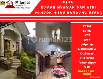 Dijual Cepat Rumah Siap Huni Pondok Hijau lt 144 lb 100 kt 2 km 1 Taman depan , full teralis air jetpum, kitchen set shm listrik 2.200 Watt hrg 1,9 M nego Mt, Mn