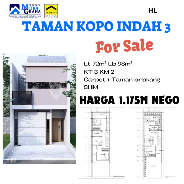 Jual Cepat Only 2 rumah Tki 3 blok D Rumah baru ( sedang tahap finishing ) Lt 72m² Lb 98m² 3KT 2KM SHM Submersibel Carpot Harga OK Lingkungan OK @ 1.175 M nego