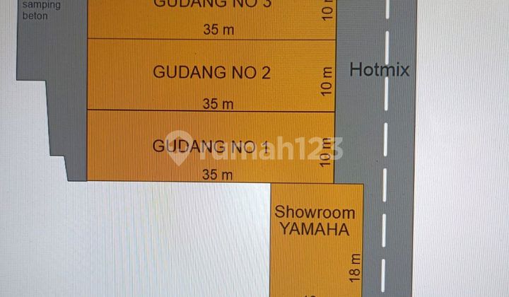 *DIJUAL GUDANG* (C5) Peta Akses kontainer 40.feet SHM LT : 2.750 m² LB : 1.500 m² Lebar muka : 58 m Air : sibel Listrik : 2200 watt x 4 KM : 4 *Harga jual : 54 M nego ME