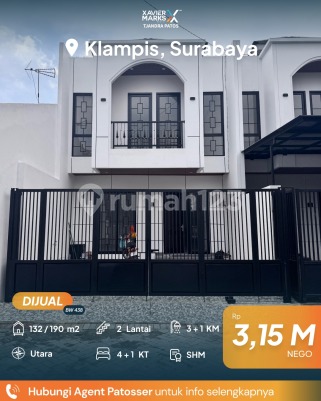 *DIJUAL RUMAH BARU GRESS DI KLAMPIS* LT 132 m2 (6x22) LB 190 m2 2 lantai KT 4+1 KM 3+1 Hadap Utara SHM PLN 2200 watt Carport 2 mobil Row jalan 3 mobil *Harga 3,15 M nego* Hub: Brigitta Wong 0811309xxxx Xmarks Tjandra Patos Surabaya Timur dekat Jalan Raya MERR, Rungkut, Kenjeran, Arif Rahman Hakim, Kertajaya, Dharmahusada, Kalijudan, Manyar, Rumah Sakit Premier, RS Haji, RS Unair, RS Mitra Keluarga, RS Gotong Royong, Galaxy Mall, Pakuwon City Mall, Transmart Rungkut, Kampus ITS, UNAIR, Sekolah Kristen Petra, Sekolah Gloria Galaxy, Pasar Keputran Timur, Jembatan Kenjeran, Taman Surabaya, Harmoni Keputih