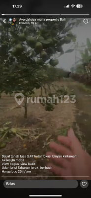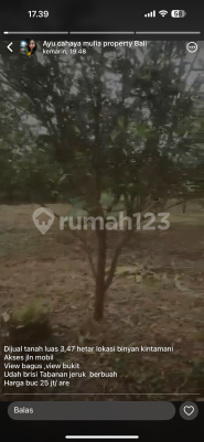 Jual tanah Biyan kintamani luas 347 are harga 25 JT per are SHM zona jalan mobil full kebun jeruk udara dingin cocok investasi dko ayu
