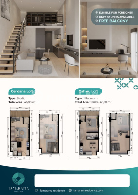 TAMARAMA RESIDENCE APARTMENT PUSAT KOTA BATAM ️ Lokasi strategis Bundaran Madani Dekat Love Seafood & One Batam Mall Harga mulai dari 658 Jutaan Cicilan mulai dari 21 Jutaan Tersedia 3 tipe unit: v Studio 35.4 m² v 1 Bedroom 41.3 m² v 2 Bedroom 67.26 m² * Fasilitas premium: v Rooftop Infinity Pool v Sky Lounge & BBQ Area v Gym v Mail & Package Room v Retail F&B