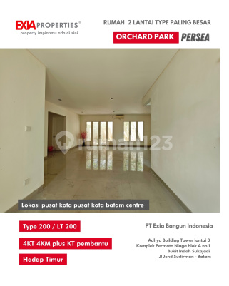 Cari rumah baru lokasi elite luas tanah 200 m2 di bawah 3,5 m di pusat kota? emang ada lagi? selalu ada kalo dengan EXIAproperties yuk miliki rumah besar di komplek elite ORCHARD PARK batam centre ; ✅ type paling besar di cluster Persea ✅ Type 200 / Tanah 200 ✅ 4 KT 4 KM ✅ plus 1 KT 1 Km pembantu ✅ Hadap timur ✅ lokasi dekat mall, mau ke bioskop CGV tinggal jalan kaki dekat pasar mitra, Top 100 grand niagamas, megamall dan sekolah2 terbaik di batam harga di bawah pasaran yuk survey dan nego segera bersama kami EXIAproperties