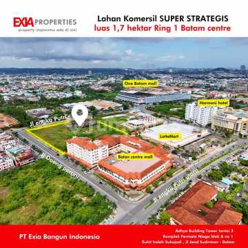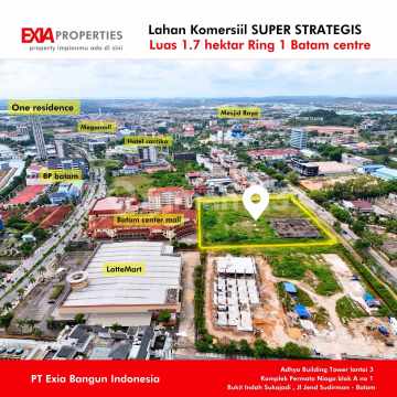 Cari lahan matang 1.7 hektar di pusat Bisnis Batam centre? Kami punya lahan siap dialihkan Luas 17.521 m2 Sudah sertipikat, UWTO des 2054 Peruntukan Komersil Lokasi super strategis Depan Jalan Engku Putri Sebelah Batam centre mall, depan pertokoan Hup Seng batam centre Betul betul lokasi emas, 2 menit pelabuhan Ferry Internasional Batam centre, dan Megamall.. Cocok bangun mall, Hotel, apartemen, gedung perkantoran sampai kompleks one stop business terpadu dll yuk survey dan nego segera