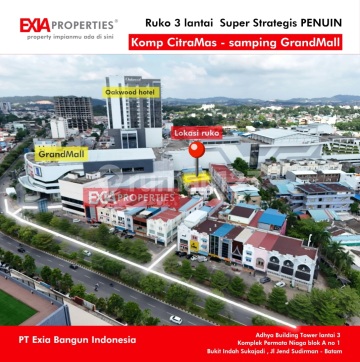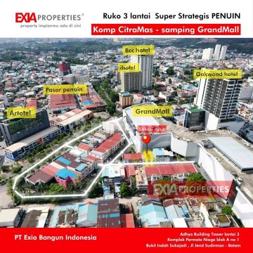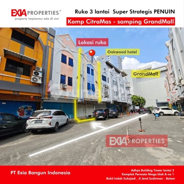Mau cari ruko 3 lantai kawasan Penuin untuk kantor, gudang, kos2an elite sampai Home stay samping Grand Mall batam? harga rata2 di atas 4,5 miliar lho kami punya yang harganya jauh lebih ekonomis dan hanya satu -satunya yuk miliki ruko 3 lantai komplek Ruko Citra Mas - Penuin LT 75 LB 225 m2 full keramik uwto baru selangkah kaki aja ke Grand Batam Mall lokasi ramai, pusat bisnis paling premium di kota batam kami tawarkan harga BU banget yuk survey segera bersama kami EXIAproperties