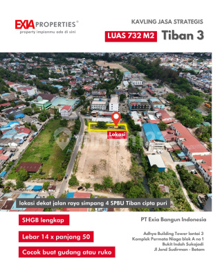 Untuk pengusaha sekupang, tibang sekitarnya yg butuh tanah > 700 m2untuk bangun gudang kami punya solusinya yuk miliki Tanah kavling kami : ✅ lokasi Tiban Masyeba Permai ✅ Luas 732 m2 ✅cPanjang 50an meter x Lebar 14 meter ✅ SHGB Lengkap UWTO 2036 Siap bangun ✅ lokasi di dekat jalan raya Gajah mada dan Tiban 3 lokasi mudah akses dan sangat ramai harga sangat menarik yuk survey dan nego segera bersama kami EXIAproperties