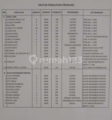Kesempatan terbatas buat Anda dapatkan pabrik nyaman dan fungsional dengan return investasi tinggi di Gringsing, Batang. Pabrik ini menawarkan kelengkapan fasilitas serta memiliki nilai tepat yang siap untuk segera Anda miliki, utamanya bagi Anda yang mencari pabrik di lokasi yang dekat dengan fasilitas umum. Output = Barecore 135 M3/Day, Blockboard 120 M3/Day Kondisi properti ini bagus dengan detail properti sebagai berikut: - Kamar Mandi: 4 - Sertifikat: SHM Tersedia berbagai fasilitas lengkap, seperti: - Jalur Telepon. Tidak hanya itu, namun properti ini juga memiliki keunggulan sebagai berikut: - Siap Huni. - Bebas Banjir. - Lokasi dipusat kota. - Dekat Kawasan Industi. - City View. - Cocok Untuk Investasi. - Properti Bisa Nego. - Lokasi Strategis. Lokasi Strategis terletak di Gringsing, properti ini memudahkan akses Anda ke fasilitas-fasilitas utama dan unggulan Harga yang sangat kompetitif yaitu, Rp. 95.000.000.xxx, pabrik ini siap menjadi milik Anda! Nikmati segala kemudahan dan berbagai keunggulan menarik saat properti berkualitas ini milik Anda. Hubungi segera dan dapatkan informasinya ataupun cek unit!