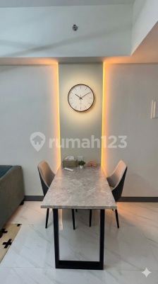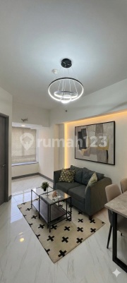 Apartemen NEW Tower/Lantai : Amor / 5 Tipe : 2 Bedroom Luas : 44.5 m2 Spesifikasi Unit: * homogeneous tile 60×60 (balkon ceramic tile) * dinding eksternal precast diplester & cat dengan partisi interior gypsum/bata ringan * plafon concrete expose + skimcoat (cat) * pintu utama & pintu ruang kayu + architrave finish cat * jendela kaca tinted kusen aluminium * sanitary TOTO/setara * listrik KWh meter sendiri 2.200 VA * tersedia jaringan air bersih/air kotor * instalasi AC + pipa drain * 1 outlet TV * sistem proteksi kebakaran gedung * smart lock di pintu masuk. Interior: * built-in & furniture multiplek finishing TacoSheet (divan 160×200 & 120×200, headboard, nakas, lemari pakaian) * gorden blackout + vitrase lengkap rel/aksesoris * sofa 2-seater * lampu gantung * coffee table * ambalan * kitchenset kabinet atas-bawah + backsplash keramik + top table granit tile * perangkat dapur (kompor gas, cookerhood, grease trap, gas detector) * set meja makan + 2 kursi * wall panel meja makan * Jam dinding Fasilitas outdoor / podium (resort facilities) * Swimming pool area: termasuk Infinity Pool, Lagoon Pool, Water Play Pool, Kids Pool, dan Jacuzzi. * Jogging track. * BBQ area. * Plaza (area komunal terbuka). * Refuge Garden / Zen Garden. * Observation Deck. indoor / clubhouse * Luxurious Lobby Lounge (indoor & outdoor). * Private Gym. * Library / Study Room. * Kids Play Room / Children Playground. * Function Room. * Meeting Room. Konektivitas & fasilitas penunjang (integrated superblock) * Akses ke mall / shopping center (terintegrasi dengan kawasan). * ATM Center. Keamanan / smart living * Smart Door Lock (tercantum sebagai fitur setiap unit). * CCTV. Konsep superblok terintegrasi (hunian, mal, hotel) dengan lokasi sangat strategis dekat akses tol dan LRT, fasilitas mewah bintang lima, keamanan 24 jam, dan jadi investasi menjanjikan. Hunian ini menawarkan gaya hidup modern one-stop living dengan kenyamanan tinggi, cocok untuk profesional, keluarga, atau investor.