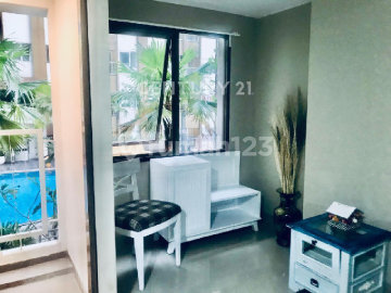 dijual unit bagus view poolside ukuran studio luas bangunan 28m full furnished (tv AC bed kulkas table study) 1200w akses langsung LRT statiun fasilitas co working space Cafe Supermarket #271320