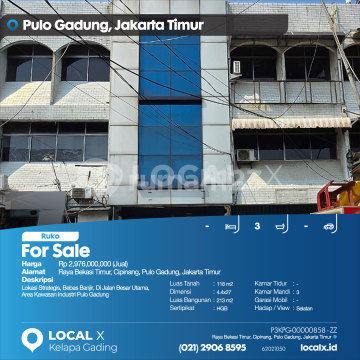 Lokasi Strategis, Bebas Banjir, Di Jalan Besar Utama, Area Kawasan Industri Pulo Gadung For Sale - Jual Ruko Raya Bekasi Timur, Cipinang, Pulo Gadung, Jakarta Timur Harga. Rp 297600xxxxJual) Deskripsi Properti. Lokasi Strategis, Bebas Banjir, Di Jalan Besar Utama, Area Kawasan Industri Pulo Gadung Luas Tanah. 118 m2 Dimensi. 4.4x27 Luas Bangunan. 213 m2 Sertipikat. HGB Kamar Tidur. - Kamar Mandi. 3 Garasi Mobil. - Hadap / View. Selatan LOCAL X Kelapa Gading ******** ⓪②① ②⑨⓪⑥ ⑧⑤⑨⑤ P3KPG-0000xxxx-ZZ-J