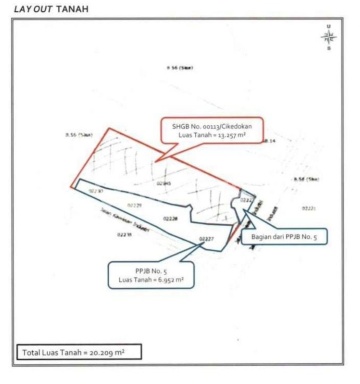 Hoek hadap tenggara - barat daya SHGB a/n PT harga sewa 3 M / thn incl PPn
