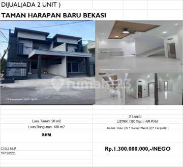 Dijual rumah cluster taman harapan baru deket Superindo Spesifikasi : * Luas tanah 90m * Luas bangunan 180m * Kamar tidur 3 * Kamar mandi 2 * Listrik 1300watt * PAM * SHM * Carport *Harga 1,3M nego* Jika berminat silahkan menghubungi saya ya Nurfajriyah - gphi