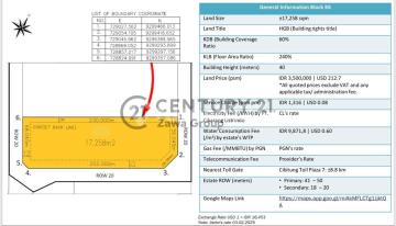 DIJUAL TANAH INDUSTRI DI MM2100 - BEKASI Lokasi : Bekasi - Jawa Barat Spec : • Dalam Kawasan Industri MM2100 • Luas Tanah 17.258 m² || 1,7 Ha • Dimensi L.56 m² x P.230 m² • 2 Lebar Muka 56 & 230 m² • Hook • SHGB • Bentuk Persegi - Ijin Industri - KLB 60 % || KDB 240 % - Ketinggian Bangun 40 meter - Akses Container 40 Feet - Row Jalan 20 meter - *BUYER ONLY* HARGA JUAL 3,5 Juta / m² - Exc PPN - NEGOTIABLE Terima Titip dan Jual Beli Property Seluruh Indonesia MORE INFO Maryana HH | KSwaRul | 568 C21 Zawa Group