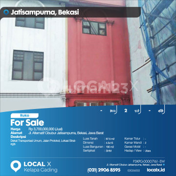 Dekat Transportasi Umum, Jalan Protokol, Lokasi Strategis For Sale - Jual Ruko Alternatif Cibubur Jatisampurna, Bekasi, Jawa Barat Harga. Rp 3,700,000,000 (Jual) Deskripsi Properti. Dekat Transportasi Umum, Jalan Protokol, Lokasi Strategis Luas Tanah. 67.5 m2 Dimensi. 4.5x15 Luas Bangunan. 190 m2 Sertipikat. SHM Kamar Tidur. - Kamar Mandi. 2 Garasi Mobil. - Hadap / View. Utara LOCAL X Kelapa Gading ******** ⓪②① ②⑨⓪⑥ ⑧⑤⑨⑤ P3KPG-0000xxxx-EW-J
