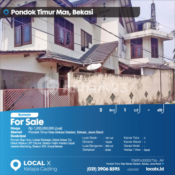Rumah Siap Huni, Lokasi Strategis, Dekat Akses Tol, Dekat Stasiun LRT Cikunir, Stasiun Halim Kereta Cepat Jakarta-Bandung, Stasiun KRL Kranji Bekasi For Sale - Jual Rumah Pondok Timur Mas Bekasi Selatan, Bekasi, Jawa Barat Harga. Rp 1,200,000,000 (Jual) Deskripsi Properti. Rumah Siap Huni, Lokasi Strategis, Dekat Akses Tol, Dekat Stasiun LRT Cikunir, Stasiun Halim Kereta Cepat Jakarta-Bandung, Stasiun KRL Kranji Bekasi Luas Tanah. 107 m2 Dimensi. 10x20 Luas Bangunan. 200 m2 Sertipikat. SHM Kamar Tidur. 2 Kamar Mandi. 1 Garasi Mobil. - Hadap / View. Barat LOCAL X Kelapa Gading ******** ⓪②① ②⑨⓪⑥ ⑧⑤⑨⑤ P3KPG-0000xxxx-JW-J