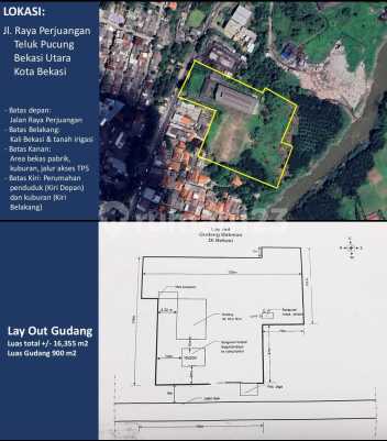 Dijual Cepat Tanah plus Bangunan di Jalan Raya Perjuangan - Bekasi Utara Luas tanah 16.355 m2 Luas gudang 900 m2 HGB Harga jual 4jt/m nego. Yen..l