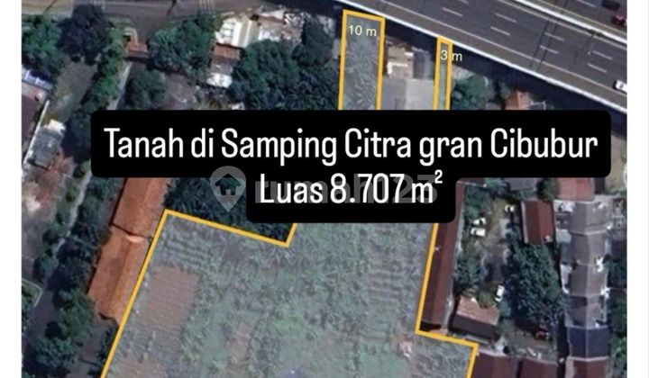 DIJUAL TANAH DI SAMPING CITRA GRAND CIBUBUR Spesifikasi : LUAS 8.707 M2_ 12 SERTIPIKAT (5 SHM, 7 SHGB) +/- 200 meter dari AKSES TOLL CIMANGGIS CIBITUNG, GERBANG TOLL JATIKARYA PERUNTUKAN: HUNIAN/ KOMERSIAL/ GUDANG KERING/ RUMAH SAKIT/ SEKOLAH *_NILAI STRATEGIS TANAH_* Terletak DI "JANTUNG" CIBUBUR yang dilengkapi dengan berbagai FASILITAS; - ☑️ Perumahan (CITRA GRAND by Ciputra Group & ALTEA BLVD by Astra Land, Sinar Mas Land) - ☑️ Hotel (HOTEL CIPUTRA) - ☑️ Pusat Perbelanjaan (MALL CIPUTRA) - ☑️ Pusat Perniagaan (Ruko Citra Gran dan Cibubur Time Square) - ☑️ Perbankan (Ruko Citra Gran, Cibubur Time Square) - ☑️ Restoran (Mall Ciputra, Ruko Citra Gran, Cibubur Time Square, dan di sekitar Lokasi Tanah) - ☑️ Pertokoan (Ruko Citra Gran, Cibubur Time Square, dan di sekitar Lokasi Tanah) - ☑️ Pompa Bensin (Pertamina) - ☑️ Beberapa Fasilitas Penunjang lainnya Harga 12.5 juta / m2 nego FR217_GP Cibubur 251125