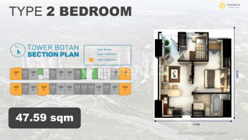 Apartemen Vasanta Innopark Lantai 29 Cikarang Barat, Kab. Bekasi Luas 47,59 m² 2 BR Jual 700 Jt