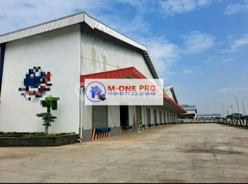 Bebas banjir keamanan 24 jam luas tanah 12.000 luas bangunan 7000 hanya peruntukan gudang ada loading dock akses container 40 feat akses tol cikarang