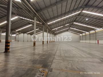 Di Sewakan Gudang di Deltasilicon Cikarang Luas tanah 1ha Luas bangunan 6432m2 SHGB Lantai k35 Ceiling 10-15m Daya 197kva Ada loading dock Gate ada 6 Hydrant Cocok untuk logistic, cargo, penyimpanan barang, Harga sewa 78.000/m2/bulan nego EL-005