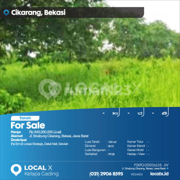 (Rp7jt/m2) Lokasi Strategis, Dekat Mall, Sekolah For Sale - Jual Tanah Sinabung Cikarang, Bekasi, Jawa Barat Harga. Rp 840,000,000 (Jual) Deskripsi Properti. (Rp7jt/m2) Lokasi Strategis, Dekat Mall, Sekolah Luas Tanah. 120 m2 Dimensi. 8x15 Luas Bangunan. 120 m2 Sertipikat. PPJB Kamar Tidur. - Kamar Mandi. - Garasi Mobil. - Hadap / View. Barat LOCAL X Kelapa Gading ******** ⓪②① ②⑨⓪⑥ ⑧⑤⑨⑤ P3KPG-0000xxxx-JW-J