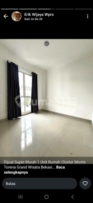 Dijual Super Murah 1 Unit Rumah Cluster Monte Torena Grand Wisata Bekasi Spesifikasi : LB 65 / LT 72 (6x12) Listrik 3300 Watt 3 Kamar Tidur 2 Kamar Mandi 2 Carport Area Dapur Terpisah Sudah ada Dak Jemur Free AC 1 Unit + Gordyn Dekat Taman Cluster Serah Terima April 2023 Lingkungan baru dengan pengawasan security 24 Jam Harga pasaran unit baru dengan tipe serupa 1.7M++ Rumah ini dijual hanya Rp 1.300.000.xxx,- Tunggu apalagi, yuk survey unit nya :pray: