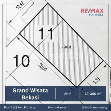DIJUAL MURAH !! KAVLING SIAP BANGUN Grand Wisata - Bekasi, Tambun LT : 200 M² Tipe : Romantic Sunset SHM Lokasi Sangat Strategis Direct Owner (EC) Harga Jual : 2 Miliar Erlina RE/MAX HARVEST 0877xxxxxxxx