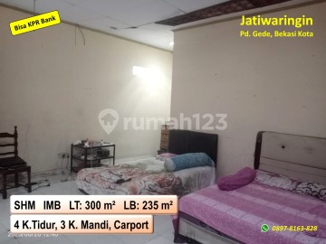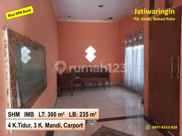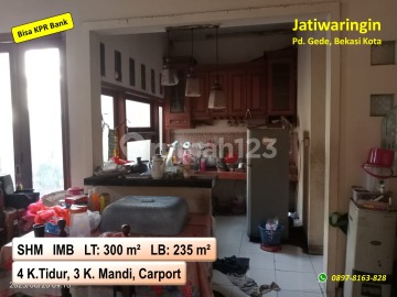 DIJUAL Rumah harga Ramah di Jatiwaringin Pondok Gede, Kota Bekasi √ SHM & IMB √ LT : 300 m² √ LB : 235 m² Terdiri dari : ˗ 4 kamar tidur ˗ 3 kamar mandi ˗ Ruang tamu ˗ Ruang keluarga (tv) ˗ Musholla keluarga ˗ Dapur & area makan ˗ Carport untuk 3 mobil ˗ Kolam ikan ˗ Gudang (atas) Keuntungan lokasi : ˗ bebas banjir ˗ Dekat fasilitas umum ˗ Dekat LRT Jatibening ˗ Dekat Toll BeCaKaYu ˗ Dekat Toll JOR Catatan : ˗ H-1 (survey unit) ˗ Hanya Rp. 1,8 M (nego) ˗ Nego dengan pemilik ˗ Pajak masing-masing ˗ Bisa KPR Bank *Riki*