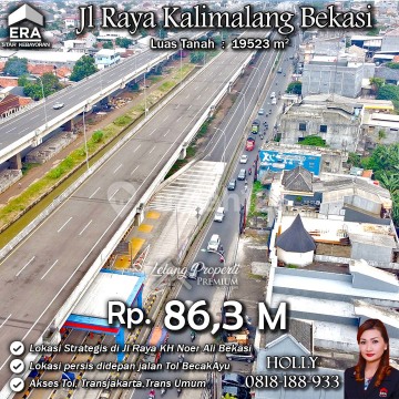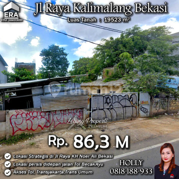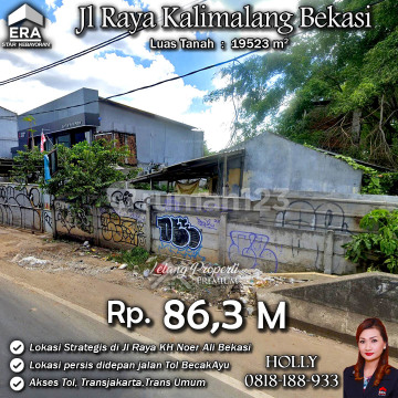INFO UPDATE LISTING - LAG TANAH LUAS DAN BANGUNAN TUA LOKASI STRATEGIS JL RAYA KALIMALANG / KH NOER ALI BEKASI Alamat: Jl. KH Noer Ali Kamp. Cibening Kel. Bintara Jaya Kec. Bekasi Barat Kota Bekasi Detail Properti: - Luas Tanah : 19523 m² Keunggulan Lokasi: - Lokasi Strategis, Asri dan Nyaman Harga: Rp. 86,3 M (CASH ONLY) Harga BELUM Termasuk biaya Pengosongan dan Balik Nama. (Harga di atas belum termasuk BPHTB 5%, biaya lelang 2%, Pajak Pemerintah 1%, dan PBB jika ada) **Kenapa Memilih Kami?** Dengan pengalaman 12 tahun di bidang lelang, kami menyediakan solusi satu atap untuk semua transaksi properti Anda. Proses yang jelas dan bersih sehingga Anda bisa tenang hingga serah terima. Hubungi Kami untuk Info Lebih Lanjut: - Holly: 081818xxxx - Ferry: 0816116xxxxLelangProperti #PropertiIndonesia #InvestasiProperti #PropertyInvestment #TanahDijual #AgentProperti #JakartaRealEstate #JualBeliProperti #EraIndonesia #AgenPropertiTerpercaya #Investasi #RealEstateAuction #Tanahdijual #RumahMewah #TanahdijualKalimalang #Rumahasri #JawaBarat #Rumahminimalis #Kalimalang #KhNoerAli #Cibening #Bekasi #BekasiBarat #TanahdijualBekasi