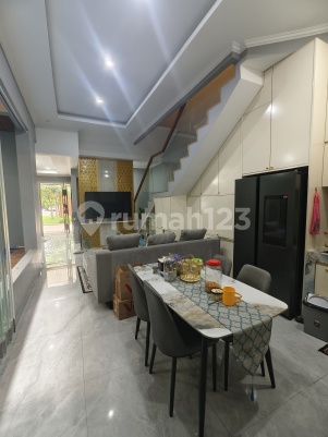 Luas 126 (18 x 7 ) 3,5 lantai Rumah bangunan baru Semi furnish yang sangat bagus Smart door Bisa 2 mobil Swiming pool Lantai paling atas ada rooftop buat ngopi2 santai Open price 4,7 M Nego